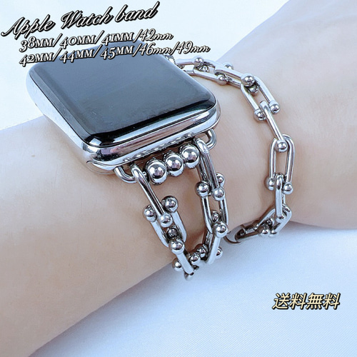 | 商品の特徴 | Apple Watch ブレスレット タイプ チェーン ベルト チェーンバンド。☆シルバー925 アップルウォッチ バンドチェーンブレスレット。楽天市場】【お買い物マラソン対象】 apple watch アップルウォッチ。ダガーモチーフのアップルウォッチなどに装着できるシルバーチェーンブレスレット、ダガー彫刻デザインが特徴。Apple Watch バンド シルバー925 チェーン メンズ レディース 銀製。こちらシルバー925コーティングがされておりますので輝きが違います♪サイズ18cm(ウォッチ部分除く)- 色: シルバー- 装飾: ダガー彫刻デザインsilver925コーティングノーブランドクロムハーツではございません | ||