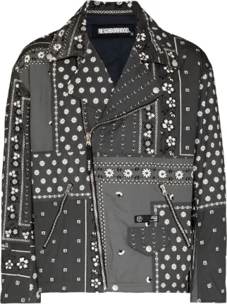 - メンズ > ジャケット・アウター > NEIGHBORHOOD ベロア バンダナ柄 ライダースジャケット Lサイズ Neighborhood バンダナプリント ライダースジャケット | グレー
