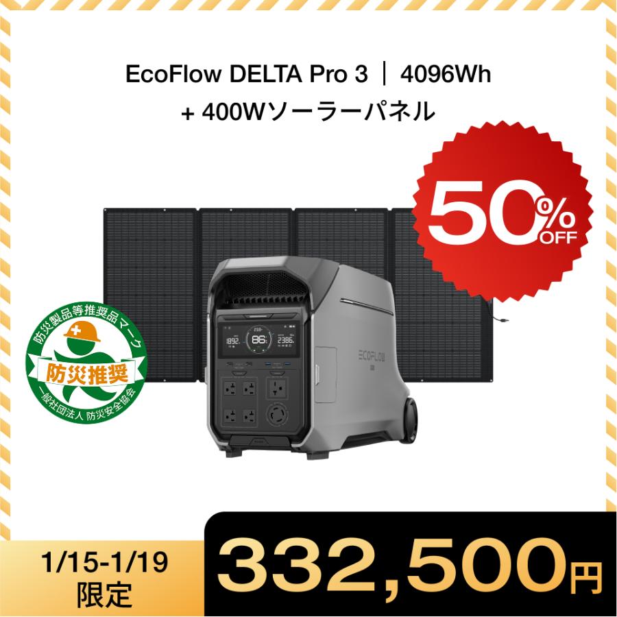 - 防災関連グッズ > 発電機・ポータブル電源 > Ecoflow DELTA 3 エコフロー ポータブル電源 ECOFLOW 【タイムセール】ポータブル電源 DELTA Pro 3 4096Wh+400W