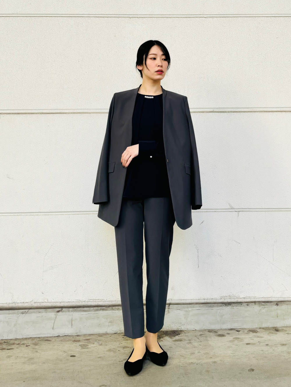 - レディース > スーツ・フォーマル・ドレス > PLST プラステ セットアップスーツ ノーカラー 洗濯可 ネイビー M PLST ネイビー ビジネススーツ M プラステ セットアップ 3点セット