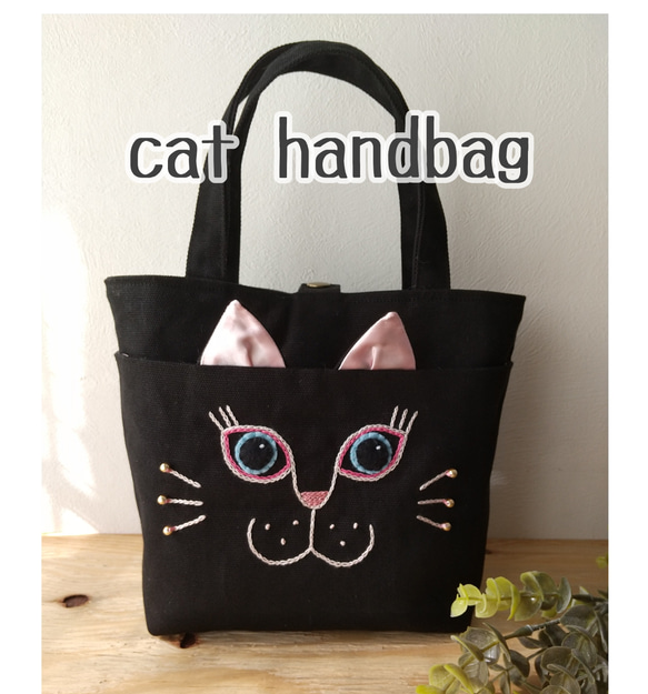 - レディース > バッグ > CAT IN DA HOUSE ビーズ刺繍 ネコ トート 黒ねこ Black CAT IN DA HOUSE ビーズ刺繍 ネコ トート 黒ねこ Black お洒落刺繍猫
