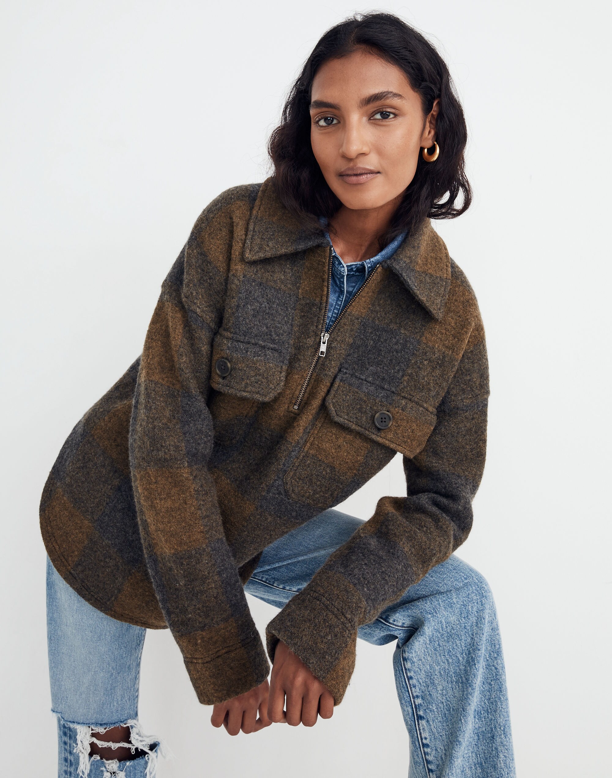 【極美品】BISHOOL Wool Beaver Check セットアップ Boiled Wool Half-Zip Popover Sweater in Buffalo Check | Madewell
