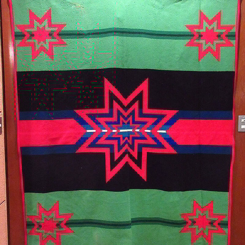 ペンドルトン 1980s ネイティヴ ウール ブランケット コート グリーン ビンテージ80's90's○PENDLETONネイティブ柄ウールブランケットsize約