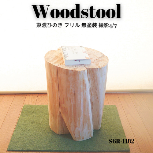 - 机・テーブル > サイドテーブル・ナイトテーブル・ローテーブル > 天然アロマ 東濃ひのき 切株スツール・テーブル・無垢無塗装・オーガニック 国産天然木 いい香り ひのき切株椅子フリル・丸太サイドテーブル・無垢