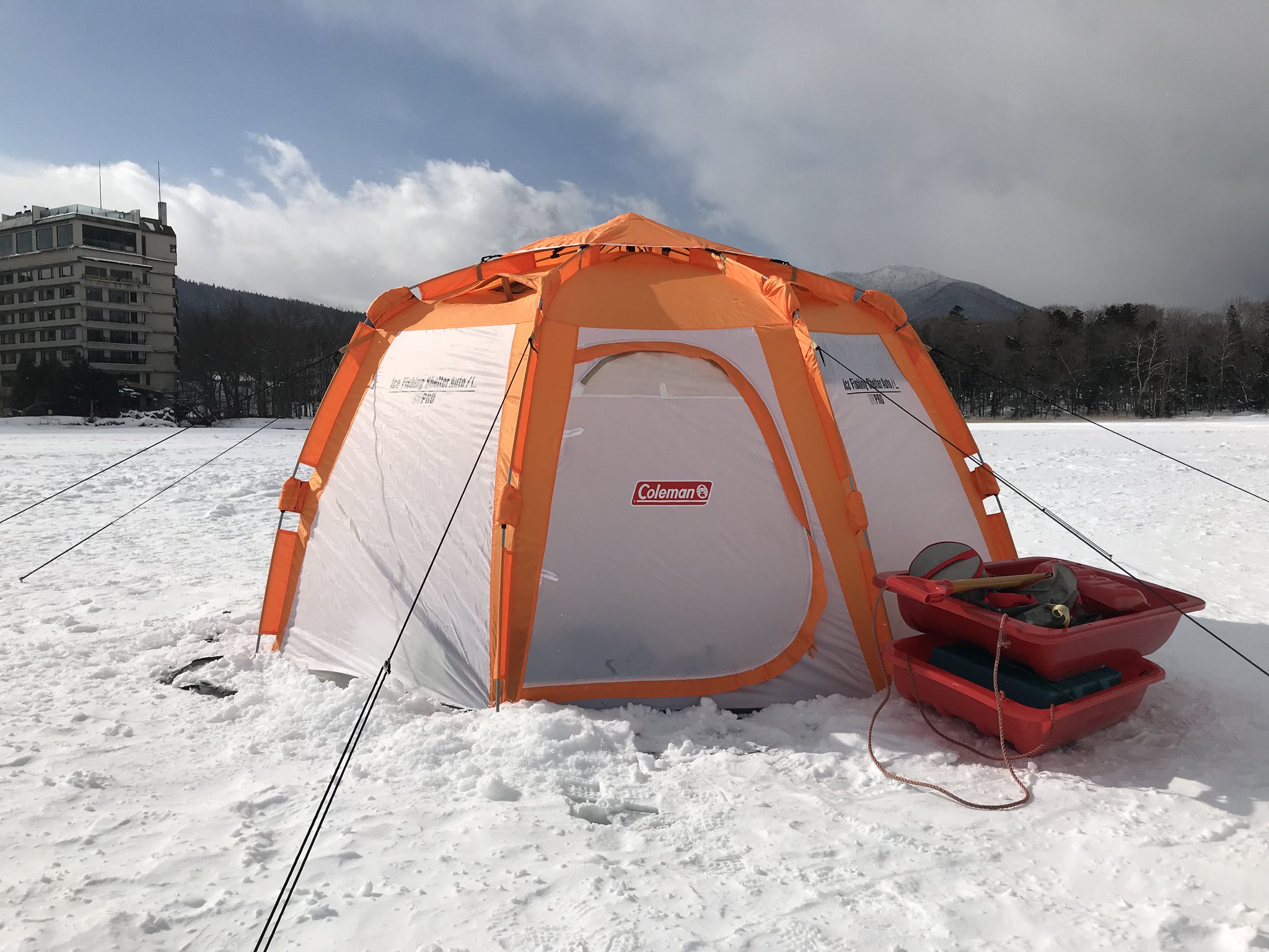 | 商品の特徴 | Coleman(コールマン)] アイスフィッシングシェルターオート L Coleman。ワカサギ釣りに最適なシェルターはこれ!【アイスフィッシング。2026年最新】コールマン アイスフィッシングシェルターの人気アイテム。ガス圧ワンタッチ機構搭載で、スピード設営・撤収が可能になったColemanのワカサギテントです。コールマン アイスフィッシングシェルター Auto III - メルカリ。【詳細】耐水圧:約800mm使用サイズ:約290×255×157(h)cm収納時サイズ:約Φ28×120cm重量:約7.5kg材質:スキン/150Dポリエステルタフタ(UVPRO、PU防水)、フレーム/FRP約Φ9.5mm仕様:3面ドア、ベンチレーション、ストームガード、メッシュポケット、スカート付属品:ペグ、ロープ、キャリーバッグメーカー品番170T16200J2023年12月半ばあたりにホームセンターで52000円で購入。★ラッピング付 familiar ナップサック リュック ピクセルアート。数回ワカサギ釣りで使用。MOVE〈pionunnal × familiar〉カフェベージュ。自宅保管だということをご理解ください。【新品】ファミリア× JAL コラボ トートバッグ。ワカサギ以外にもキャンプにも使用できて簡単に設営できるので初心者の方にも素晴らしい商品だと思います(^^)発送は2~3日で発送に設定しますが出来る限りスピーディーに発送を心がけます。ファミリア ギンガムチェック トートバッグ。ワカサギ アイスシェルター | ||
