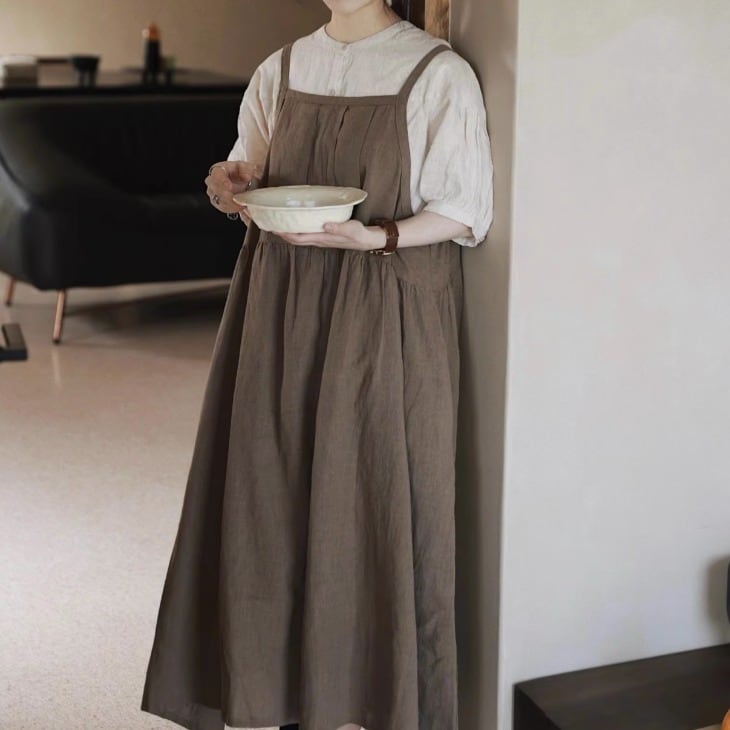 | メーカー | マニュエルギバル リネン吊りスカート (色はキャメル) リネンギャザージャンパースカート |