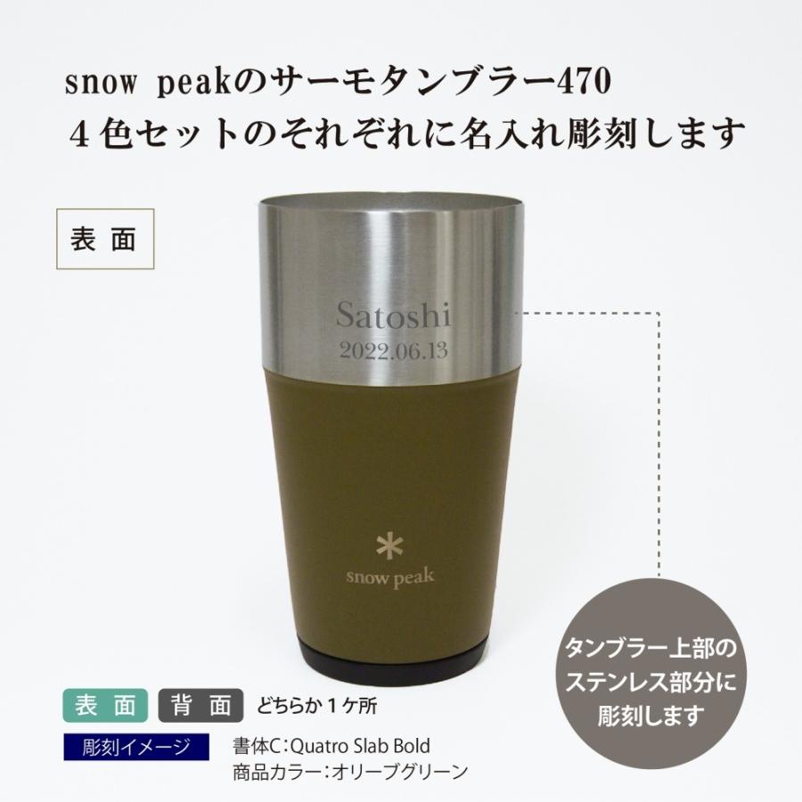 - アウトドア > バーベキュー・調理用品 > ⭐️【未使用】スノーピーク peak サーモタンブラー 4色セット snow peak(スノーピーク) サーモタンブラー 470 4色セット 名入れ