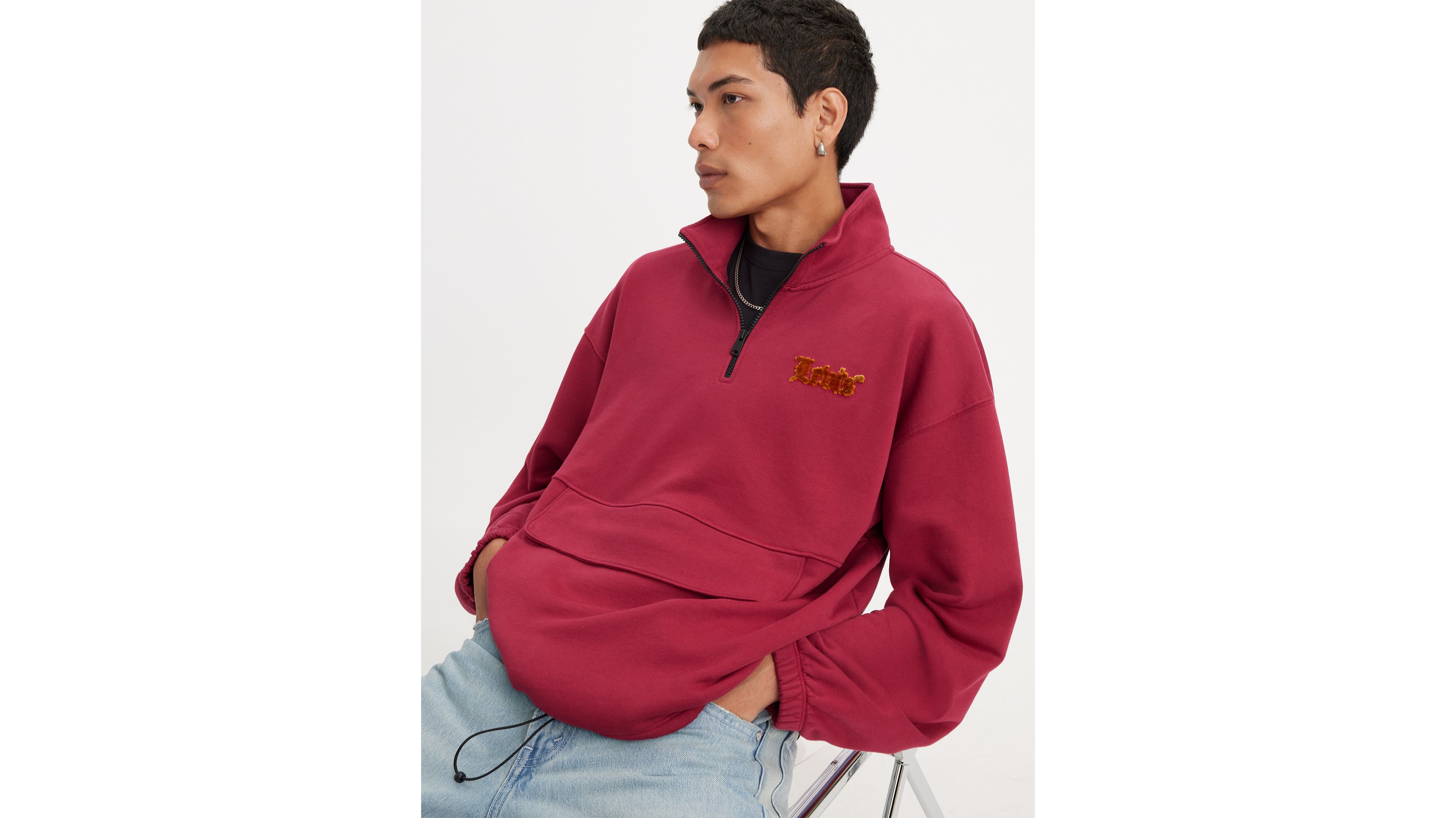 【/r × LON】Two Side Sweatshirt #4 Relaxed Graphic Quarter-zip Sweatshirt - Red | Levi's® XK