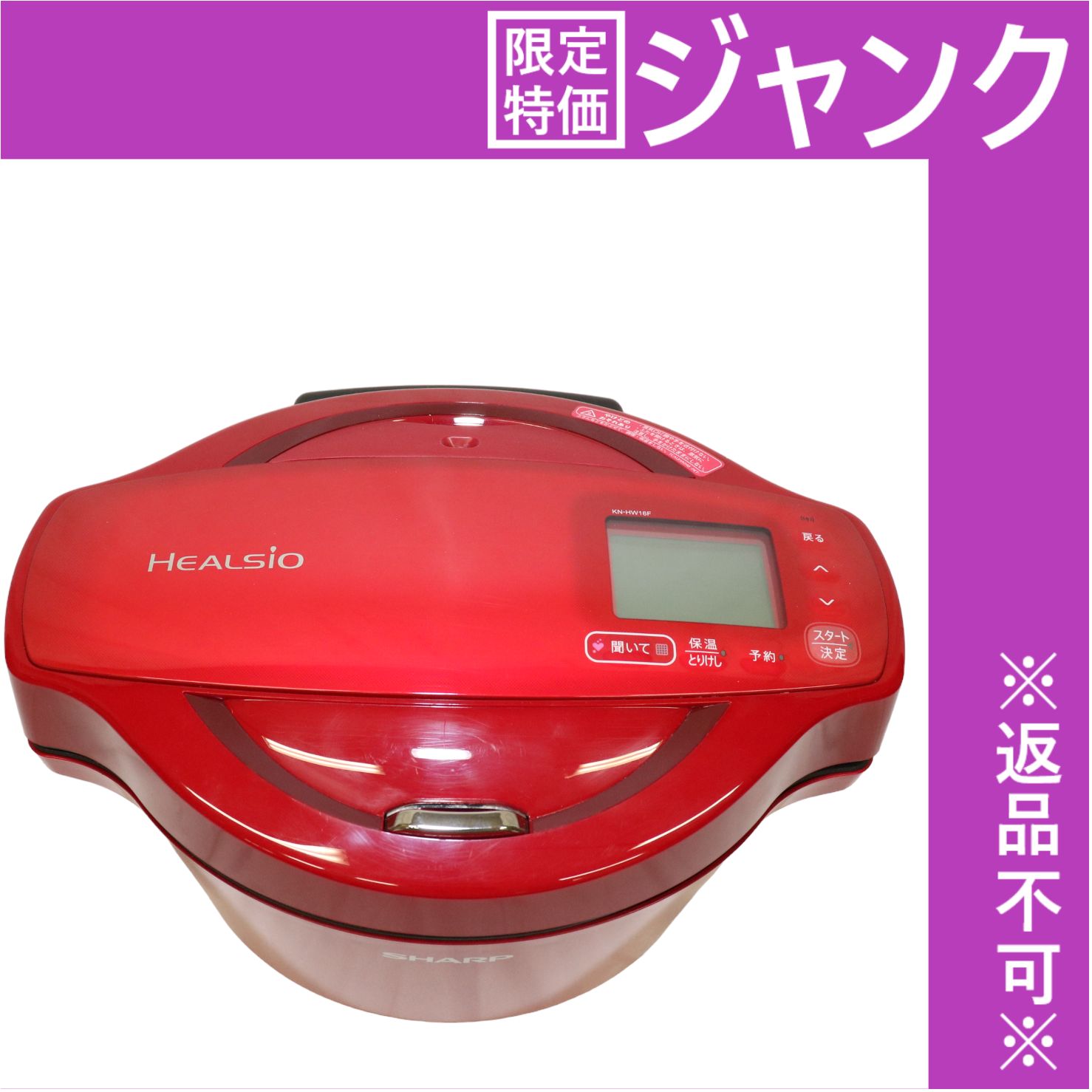 | 商品の特徴 | SHARP ヘルシオホットクック KN-HW16F 赤 SHARPヘルシオホットクック。ホットクックの秘密 | KN-HW16G | ヘルシオ ホットクック:シャープ。新品未開封】SHARP ヘルシオホットクック KN-HW16F-W。SHARP ヘルシオホットクック KN-HW16F 赤 2020年製品!【商品詳細】❏商品名:シャープ ヘルシオ ホットクック KN-HW16F-R ❏容量:1.6リットル(2~4人分の調理に最適)❏カラー:レッド❏製造年:2020年❏状態:未使用に近い!❏取扱説明書、レシピ本付き【特徴】❏無水調理:食材の水分だけで調理するため、素材本来の旨味を引き出します。パナソニック オートクッカー。❏無線LAN対応:専用アプリと連携し、レシピの追加や操作がスマートフォンから行えます。【新品未開封】ソイリッチ SOY RICH 完全豆乳メーカー ミキサー 大豆。。ヘルシオ ホットクック1.6 KN-HW16F。❏自動かきまぜ機能:煮込み料理などで、手間なく均一な仕上がりを実現します。❏予約調理:最大15時間後までの予約が可能で、忙しい日々の食事準備をサポートします。ブレンドテック BLENDTEC ブレンダー CLASSIC 570 ミキサー。新品 シャープ ヘルシオ ホットクック KN-HW24G 2~6人用 2.4L。【付属品】❏本体❏内鍋❏中ぶた❏蒸しトレイ❏まぜ枝ユニット❏つゆ受け❏電源コード無線LAN機能付きの赤い電気圧力鍋。- ブランド: SHARP- モデル名: KN-HW16F- 色: 赤- 機能: 無線LAN機能付き- タイプ: 電気圧力鍋ご覧いただきありがとうございます。BALMUDA ムーンケトル バルミューダ KPT02JP-BK | ||