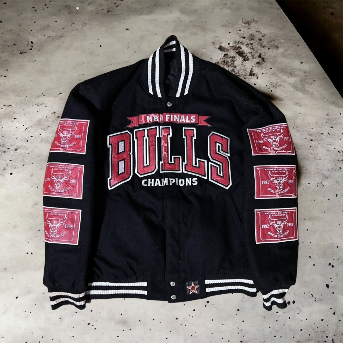 - メンズ > ジャケット・アウター > 【希少】JEFF HAMILTON シカゴブルズ NBA 優勝記念スタジャン L 希少】JEFF HAMILTON シカゴブルズ NBA 優勝記念スタジャン L NBA