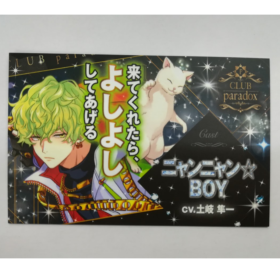 | 商品の特徴 | ParadoxLive パラライ 燕夏準 ホスト 名刺 ParadoxLive パラライ。📢特 典 解 禁❤️🔥 渋谷にて開催中の ポップアップストア。ParadoxLive パラライ ホスト名刺 夏準 燕夏準 パラライ ホスト風名刺。Paradox Live パラライ 犬飼憂人 ホスト 名刺 カード|Yahoo!フリマ。スリーブに入れ保管していました | ||