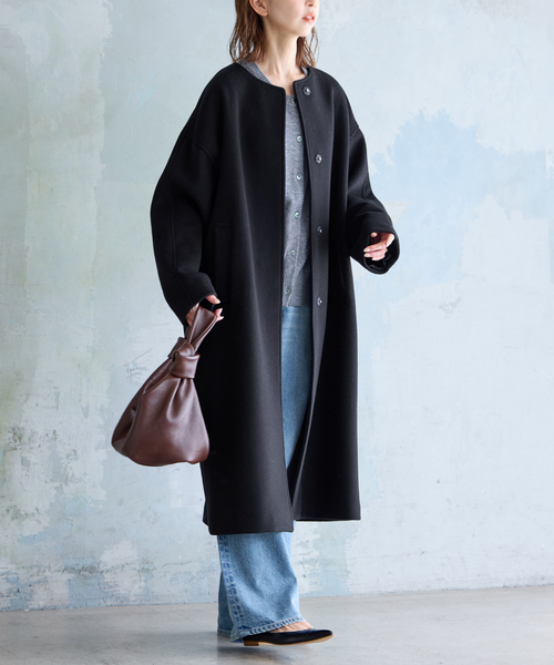 - レディース > ジャケット・アウター > ジャーナルスタンダード ロングコート ブラック ウールコート ノーカラーコート 追加2》スーパー140ビーバーノーカラーコート(ノーカラーコート