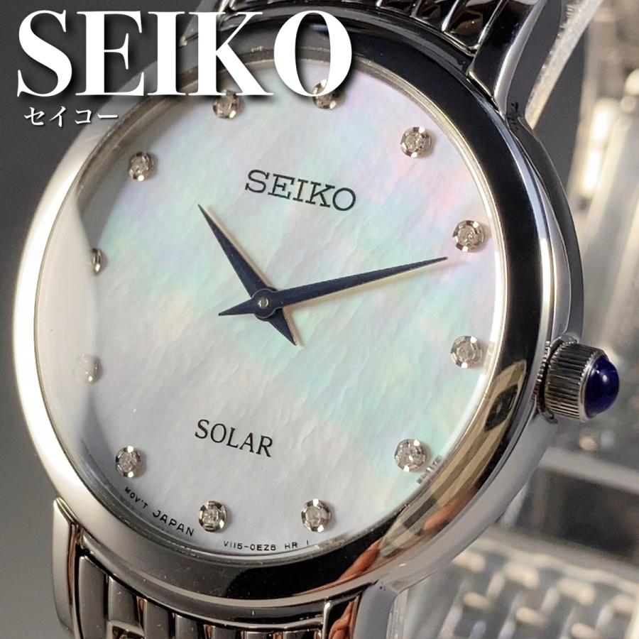 | 商品の特徴 | SEIKO(セイコー) 海外モデル ソーラー 女性腕時計 レディース。CITIZEN(シチズン) ソーラー腕時計 安い 見やすい 軽い かわいい。Women's – セイコーオンラインストア | 時計・腕時計のSEIKO。【新品・未使用】メーカーでは販売終了になっているSEIKOのソーラー電波時計です。充電不要で正確な時間に定期的に修正されるようになっております。また、10気圧防水のため水に濡れても安心で汚れた際にも水洗い可能です。稼働確認済みですが、閉まったままでの保管になりますのでご使用の際は太陽光か蛍光灯の下で充電から行うようにお願い致します。箱にやや傷があるのでご理解いただける方のみご購入お願い致します。正規価格は63800円になります。腕のサイズは調整でき、調節する道具と説明書も付いてます。最大17.5センチまで調節可能ですが13.5センチでの発送になります。- ブランド: SEIKO- モデル番号: SSVV036- 価格: 63,800円(税込)- ムーブメント: ソーラー- キャリバーNo: 1835- 精度: 月差±15秒- 駆動期間: フル充電時約6ヶ月- ケース素材: ステンレス- バンド素材: プラスチックバンド- ケースサイズ: 35.0mm- ケース厚: 7.6mm- バンド幅: 7.5mm- バンド長: 約17.5cm- ガラス素材: スーパークリアコーティング【検索用】レディース腕時計、ソーラー電波時計、SEIKO、セイコー、腕時計、かわいい。SEIKO SELECTION セイコー ナノユニバース 限定モデル ソーラー。正規品 TIFFANY&Coティファニー クラシックレクタンギュラー 稼働品。稼働 MIKIMOTO 腕時計 ローマン 新品ベルト ラウンド 2280。RADO DIASTER 153.0406.3 未使用 稼動品。【稼働・良品】シチズン xC クロスシー ソーラー 電波腕時計 H058。希少 Yves Saint Laurent 時計 40周年 YSL。OMEGA De Ville 手巻き時計。BLACKLAGOON 腕時計 | ||