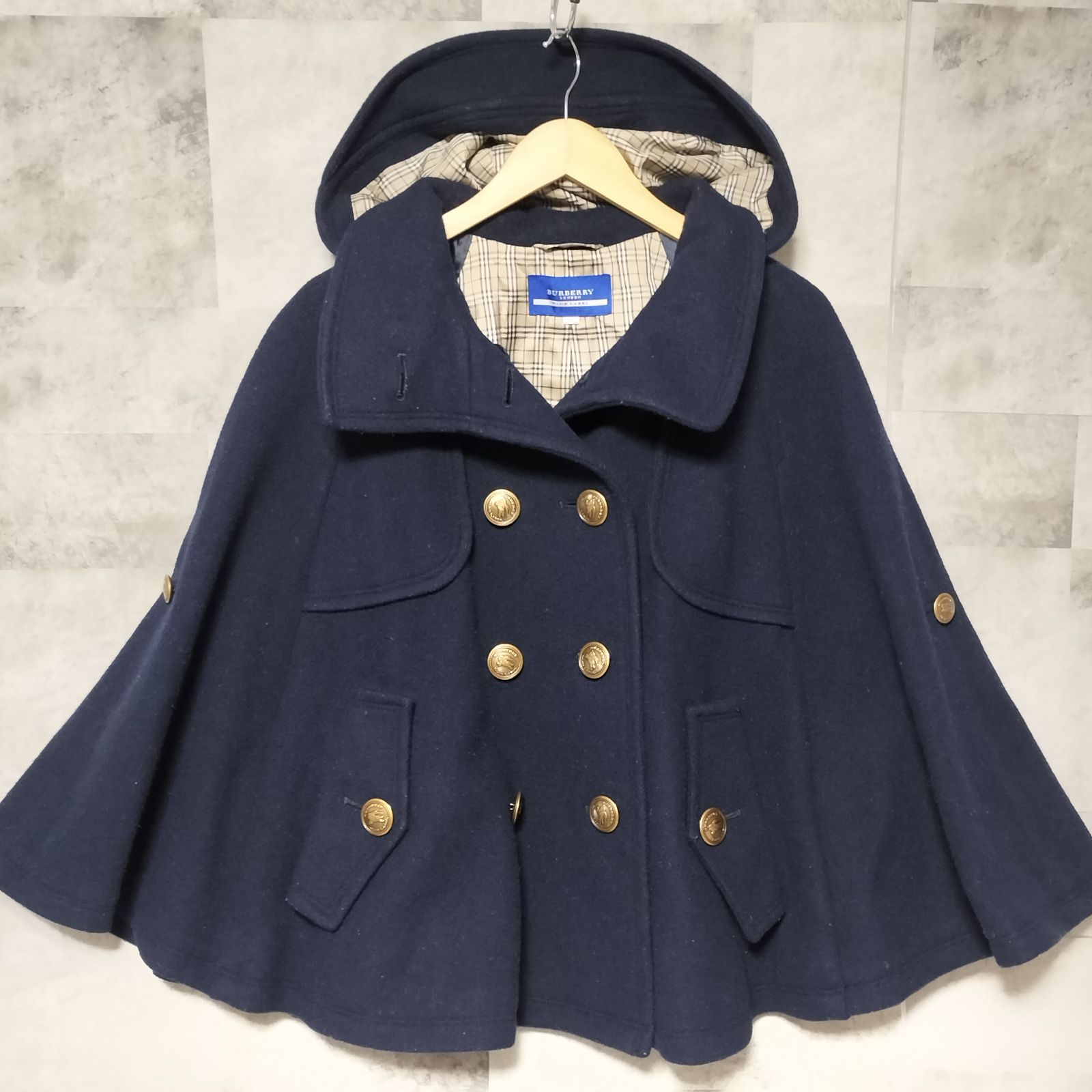 【美品】BURBERRY BLUE LABEL ケープ(ポンチョ) 希少】BURBERRY BLUE LABEL 2way ウール メルトン ポンチョ コート 38