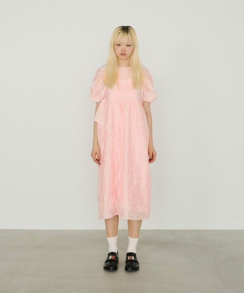 ANDRESD バブルスリーブジャガードドレス オケージョンドレス ピンク セール】バブルスリーブジャガードドレス / bubble sleeve jacquard