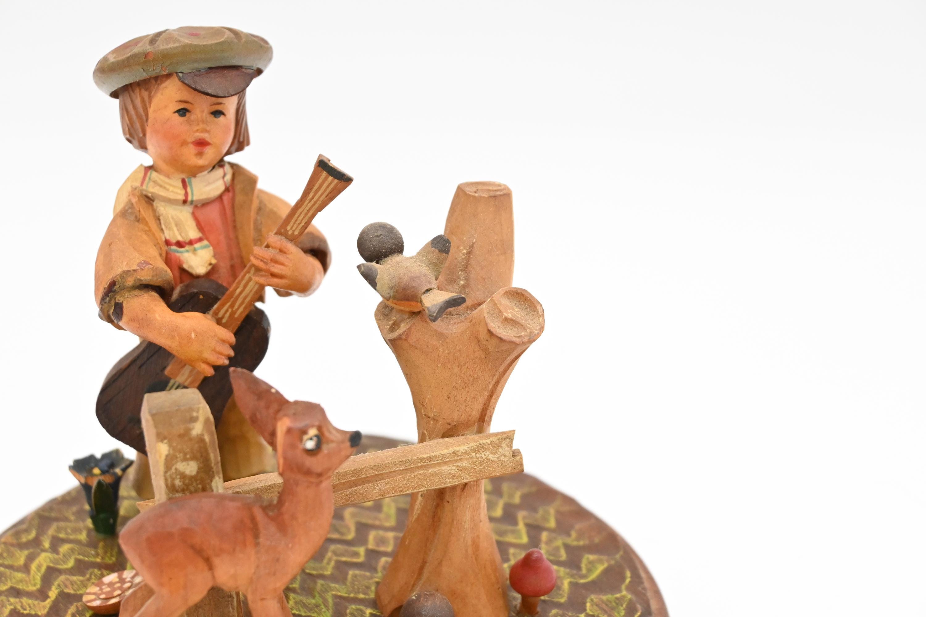 | 商品の特徴 | Vtg Anri Thorens Music Box Top 。2026年最新】トーレンス オルゴールの人気アイテム - メルカリ。スイス Thorens社製 オルゴール Lala's Theme – smileantiques。Thorens-Anri 1960年代 スイス製オルゴール10年くらい前にアンティークショップで購入したものです。スイス製Anriの人形はヘンゼルとグレーテルがモチーフで真ん中の魔女のお菓子の家の周りをヘンゼルとグレーテルの人形が回ります。ヘンゼルとグレーテルの足元にはパン粉を啄む小鳥たちがいます。内部のオルゴールの機械はスイスのThorens製で綺麗な音が出ています。曲は「moon 」です。「ティファニーで朝食を」で有名な曲です。状態はオルゴールは年代相応の劣化はあると思われますが現時点で特に問題はないと思います。Anriの人形部分は70年くらい前の手彫りの木工品ですので時代相応の劣化あると思われますが、状態は良く美品だと思います。当方で気づいているのは、購入当初から男の子の人形の左腕が補修されています。アンリの木工彫刻については、ほとんどの部分が手彫りで木と複合材を組み合わせています。ANRIのフィギュアを作るには、平均して約3ヶ月かかります。その工程は、フランスの植林地から樹齢80年のカエデの木を購入することから始まる。健康で最良の木だけが選ばれ、ANRIの基準を満たすのはそのうちの20%ほどである。これらの丸太は最長3年間空気乾燥され、その後、水分を10%に減らすために窯で乾燥されたブロックにカットされる。1937年、木彫職人オズワルド・モロダーがこの店を創業した。とあり、確かに木材の歪みや割れは特に無いようです。オルゴールの本体のスイスThorens社は1883年スイスに創業された精密機器メーカーである。近年は主にレコードプレーヤーおよびその関連商品のメーカーとして知られる。以前はオルゴール、オイルライター、ハーモニカ等も製造していた。なにぶん古い物ですのでその点をご理解の上ご購入ください。サイスは最大幅(円盤部)22cm、高さ19cmくらいです。Anri-Thorensでは大きな物です。。THORENS (トーレンス) ディスクオルゴール ディスク | 東京世田谷の。リュージュオルゴール 36弁 クリスタルガラスボックス ドルフィン。Disney Cinderella オルゴール。耳をすませば バロン オルゴール どんぐり共和国 廃盤品 おまけ付き。耳をすませば バロン ルイーゼ オルゴール。耳をすませば バロン 、ルイーゼ 、オルゴール セット。月に寄りそう乙女の作法 DESIRE オルゴール。【新品未使用】Disney Cinderella オルゴール シンデレラ。トイストーリー ベッド型 オルゴール付きスノーグローブ。ジブリ 『紅の豚』 ポルコ·ロッソ オルゴール 陶器製 稼働確認済み。ハート型オルゴール 金色装飾。専用 リュージュ メカニカル72弁3曲 東Y7-0609⭐︎2Fトトオ。〈美品〉REUGE MUSIC リュージュ オルゴール カノン 一曲再生可能。【未開封】加藤工芸 ディズニー チップとデール ミニオルゴール。稼働品リュージュシリンダー式オルゴール144弁3曲 東Y7-0217☆1Fチコサ。トトロオルゴール となりのトトロ ジブリ。新海誠 ほしのこえ オルゴール コミケ販売品【限定200個】。新品72弁 リスト作曲 ♪ラ・カンパネラ(3パーツ)オルフェウス720オルゴール。ジブリパーク にせの館長室オルゴール。耳をすませば バロン・ルイーゼ オルゴール。ジブリ 魔女の宅急便 オルゴール。◾️極美品◾️キングダムハーツ オルゴール【シオン/ロクサス 2点セット】 | ||